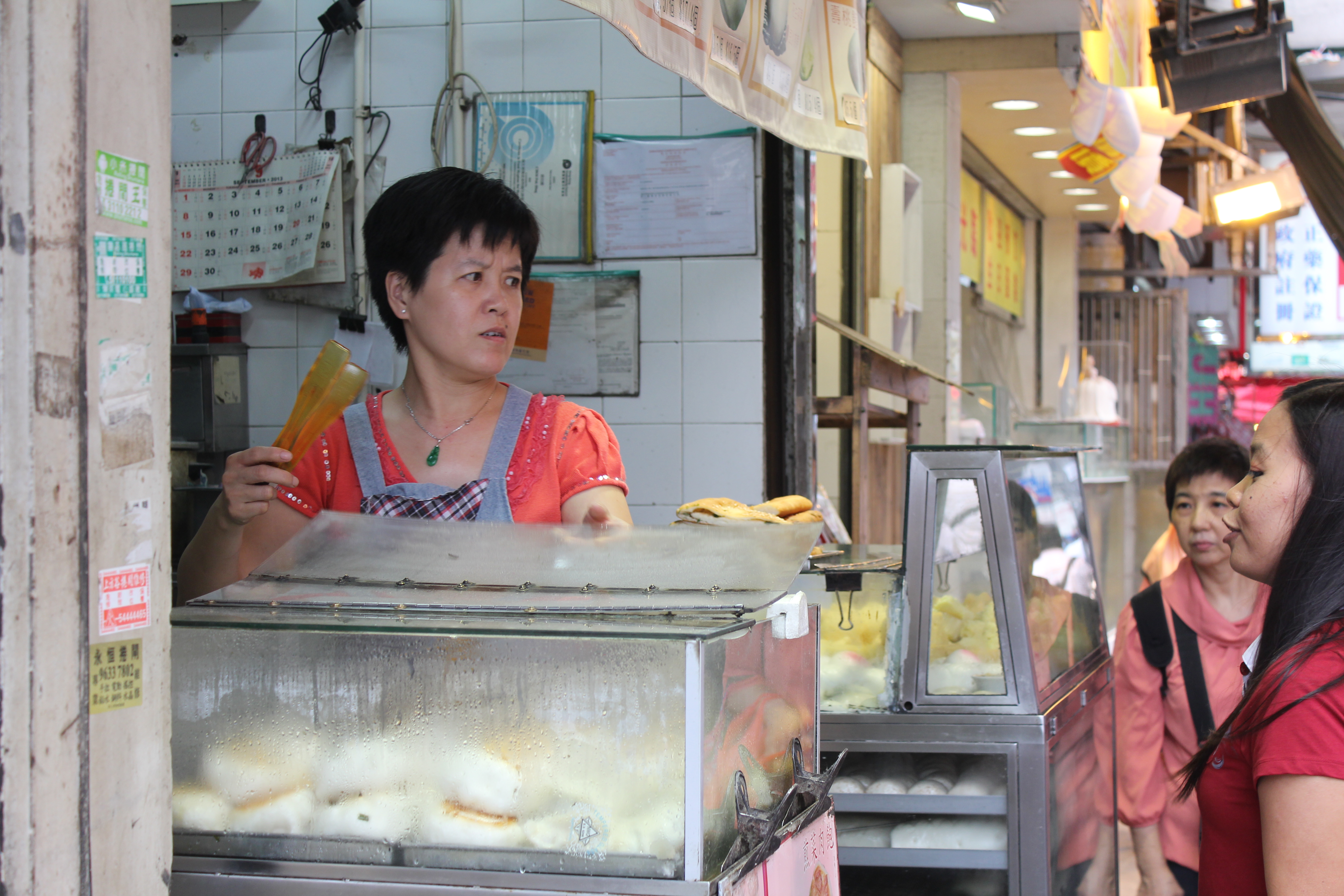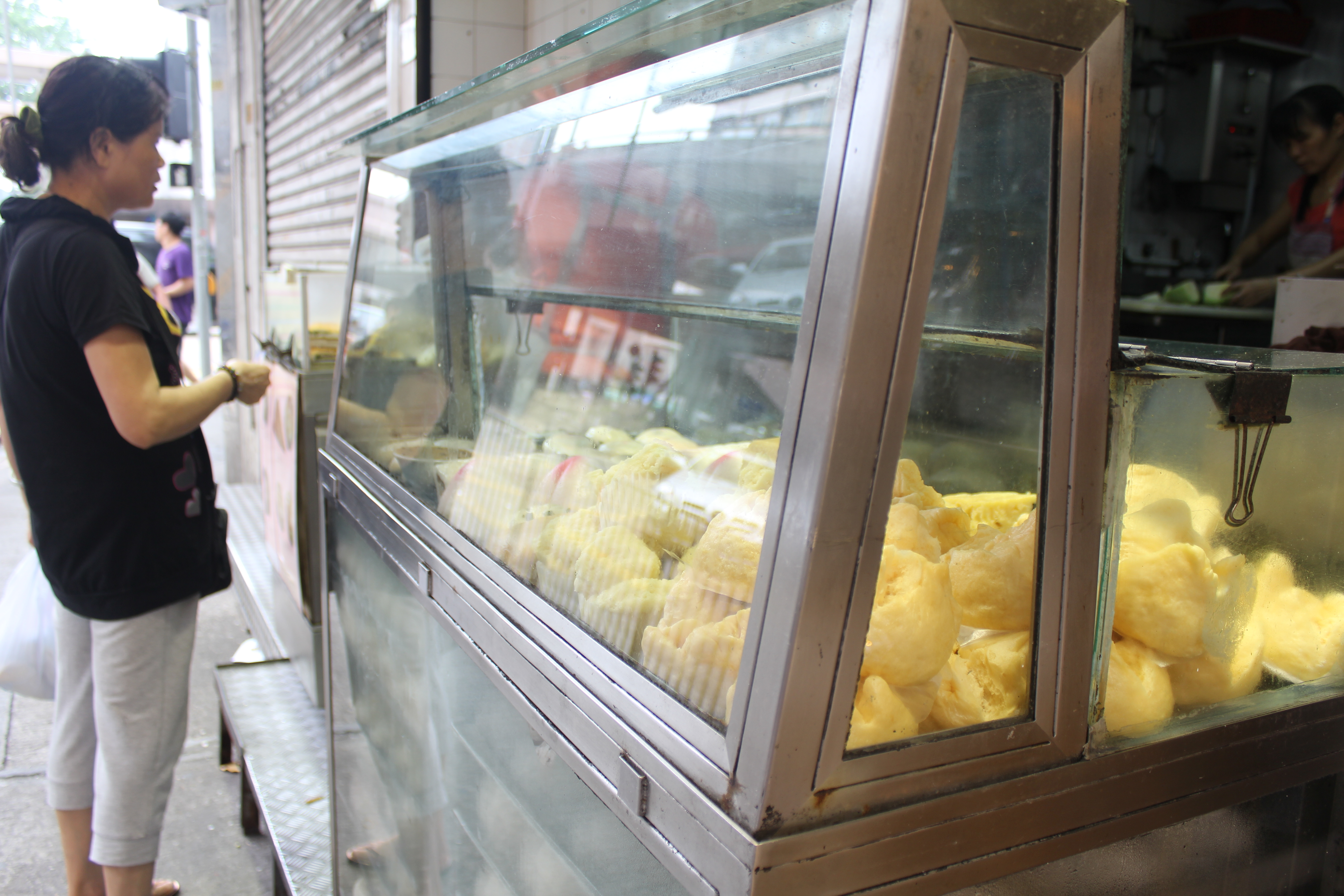 For something more substantial, its off to our next favourite hole-in-the-wall vendor in North Point, the lady we’ve affectionately dubbed the ‘steamed bun chick’. Located on Tong Shui Road (translates to Sugar Water Road – how appropriate for our foodie hearts!), this shop has tray after tray of differing types of steamy goodness.