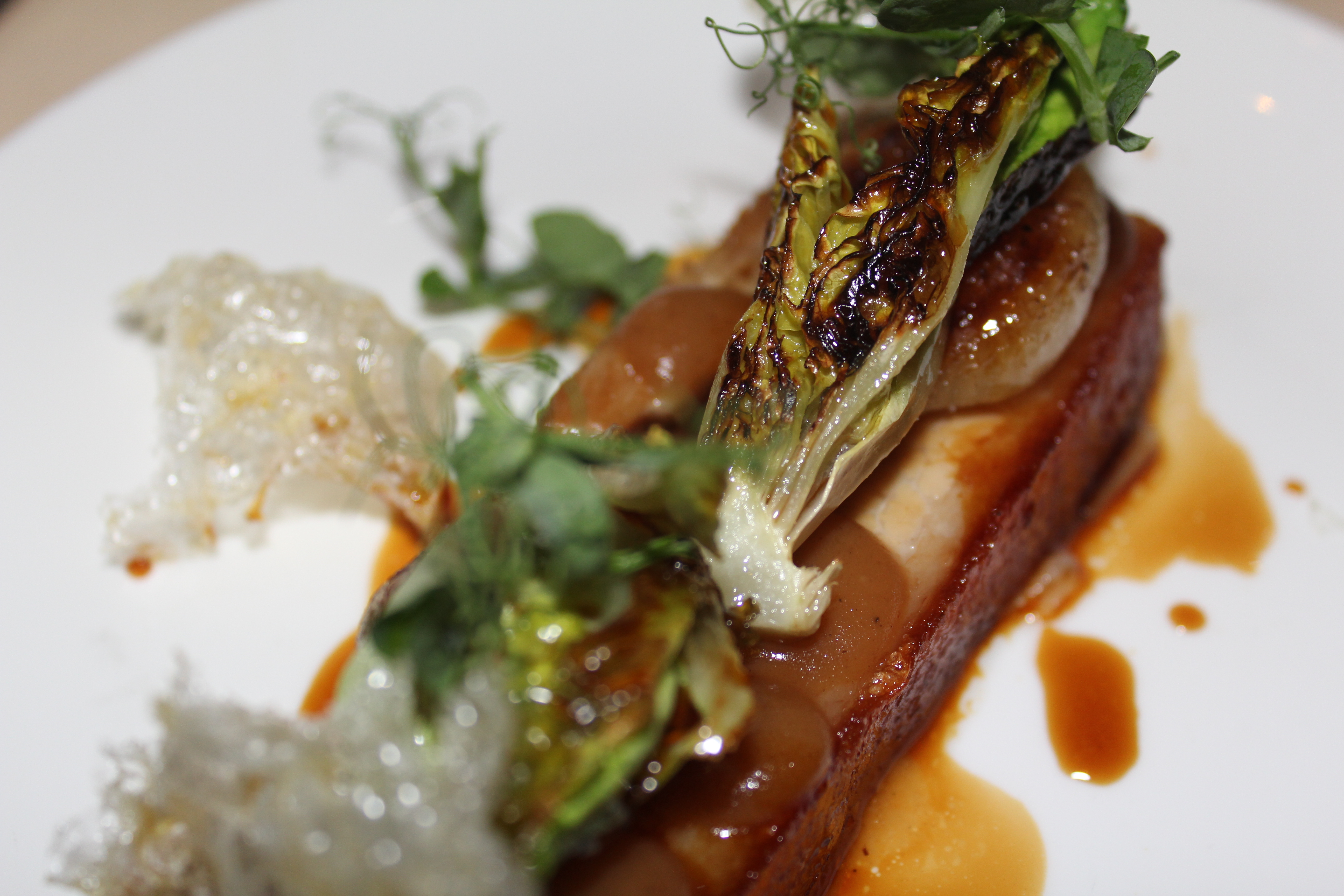 The next plate to arrive had such an effect on us, our legs were shaking like a dog being scratched in its ‘spot’.  Little splots of a tangy lemon dressing complimented the supremely tender but meaty beetroot-cured salmon.  This was fish at its best and we gleefully split and DEVOURED the plate of our fourth member who doesn’t eat salmon. He’s welcome to come and not eat salmon anytime he wants.