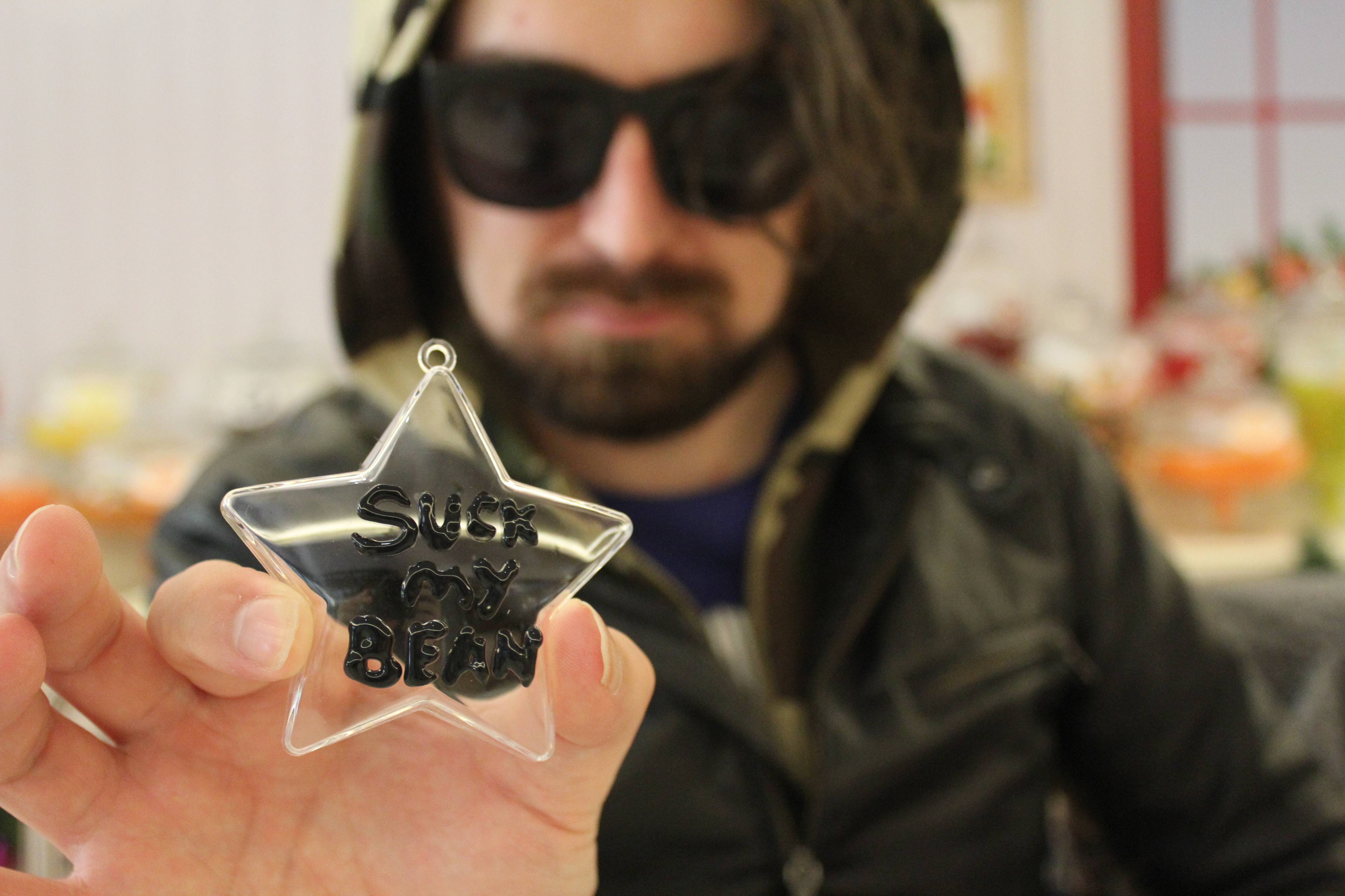 Though Dan grumbled, he got quite into designing his own jelly bean ‘jar’…