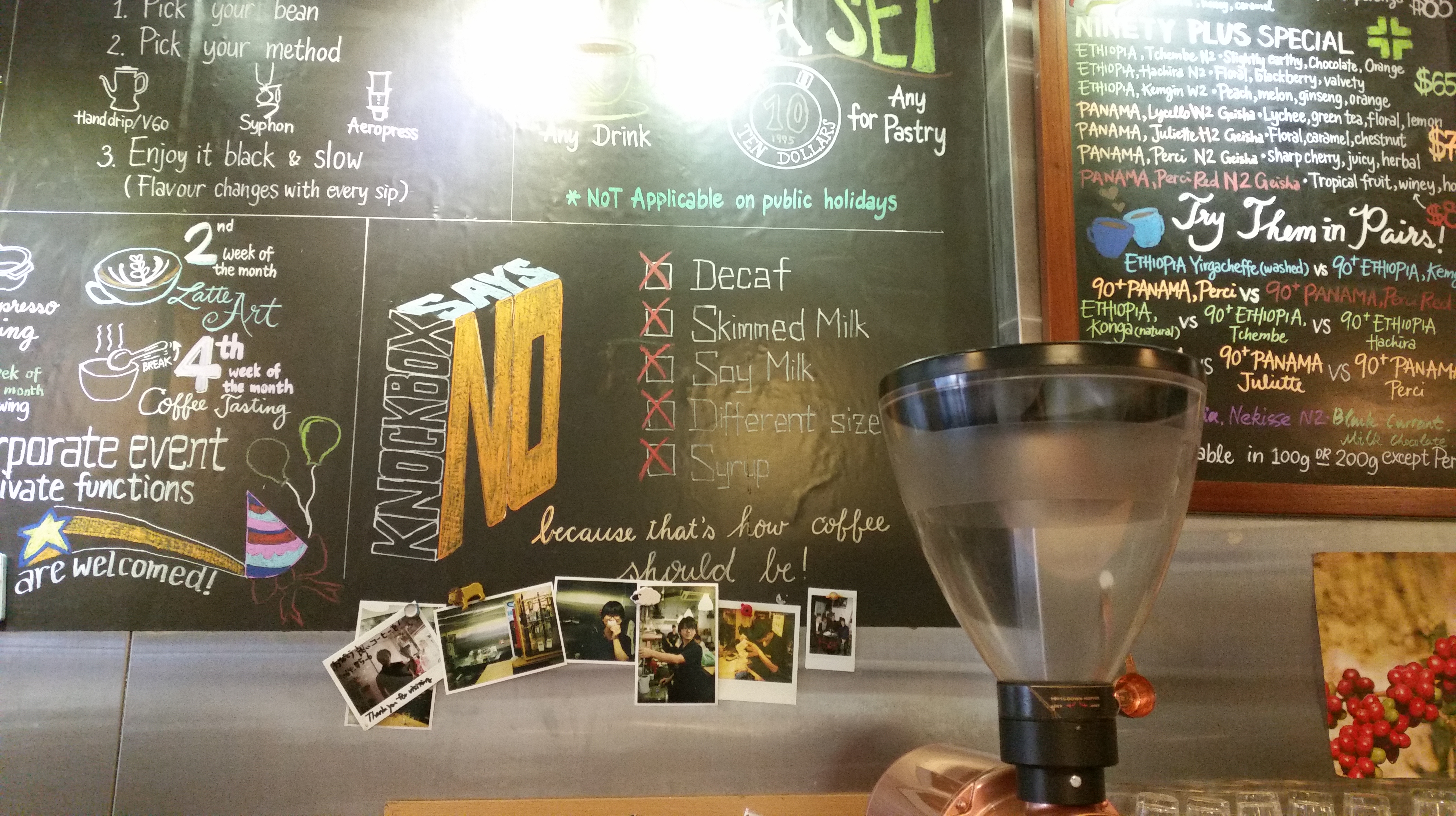 The heavyweight of caffeine experiences in Hong Kong, we wish it was just an eensy bit closer to our house…though if it was we’d be bankrupted within a week. These guys know their coffee possibly more than any other baristas we’ve ever come across. If you’re into coffee geekery or ever just want to experience something novel try Knockbox. For $150 they offer a coffee tasting where you can sample either three different types of coffees or 3 different preparations. Very cool, very educational, very dangerous 🙂