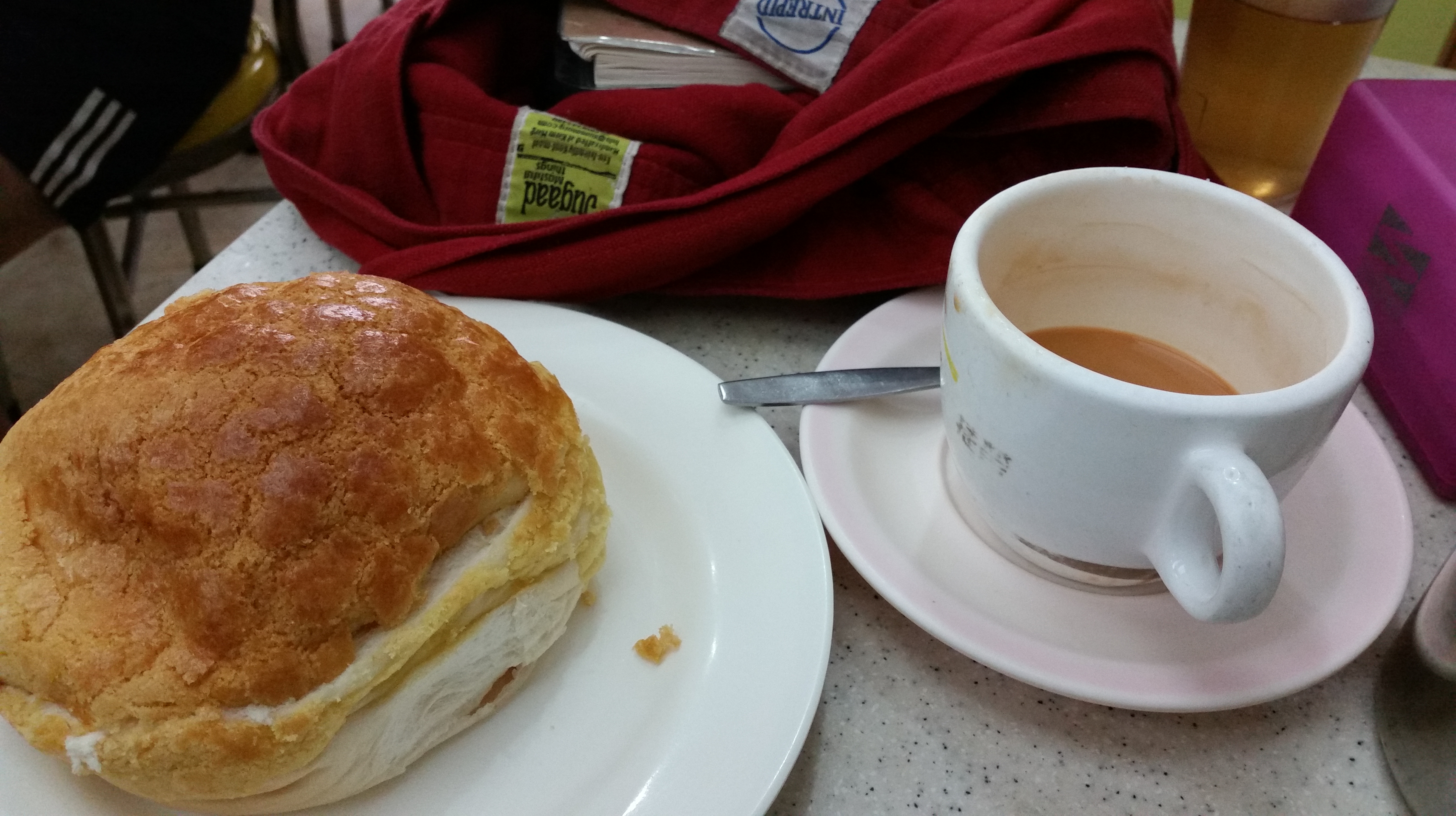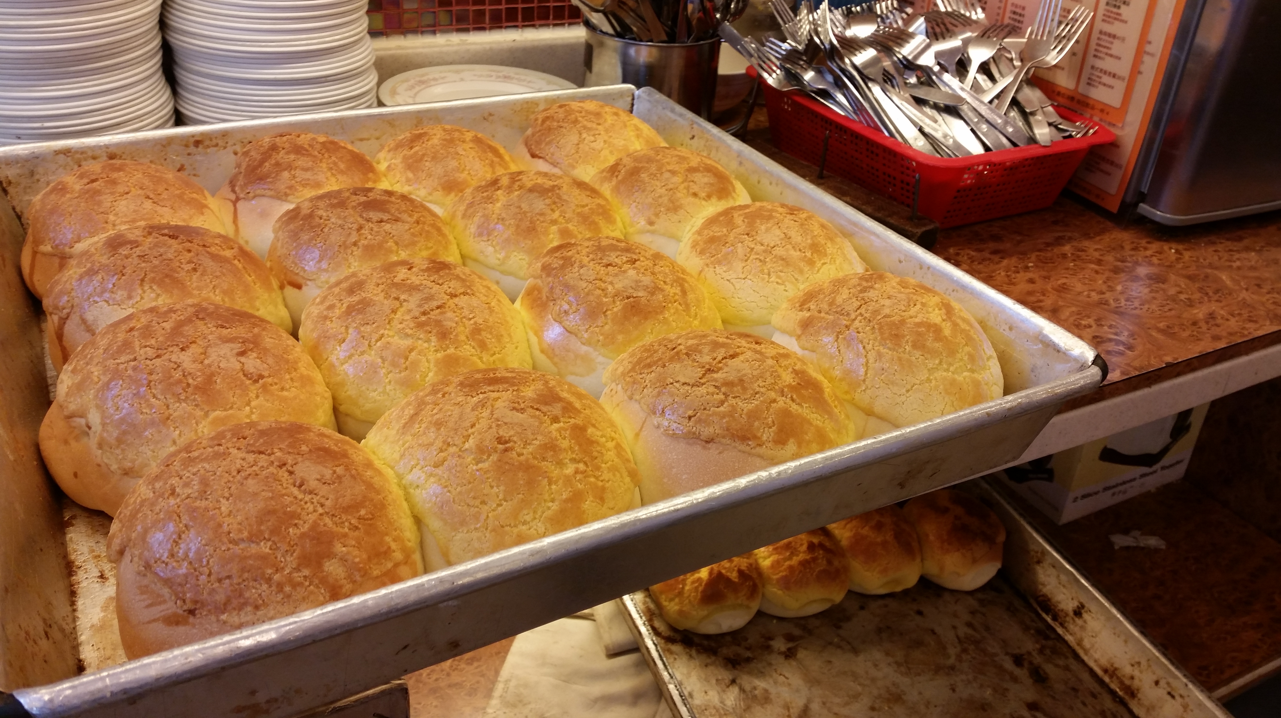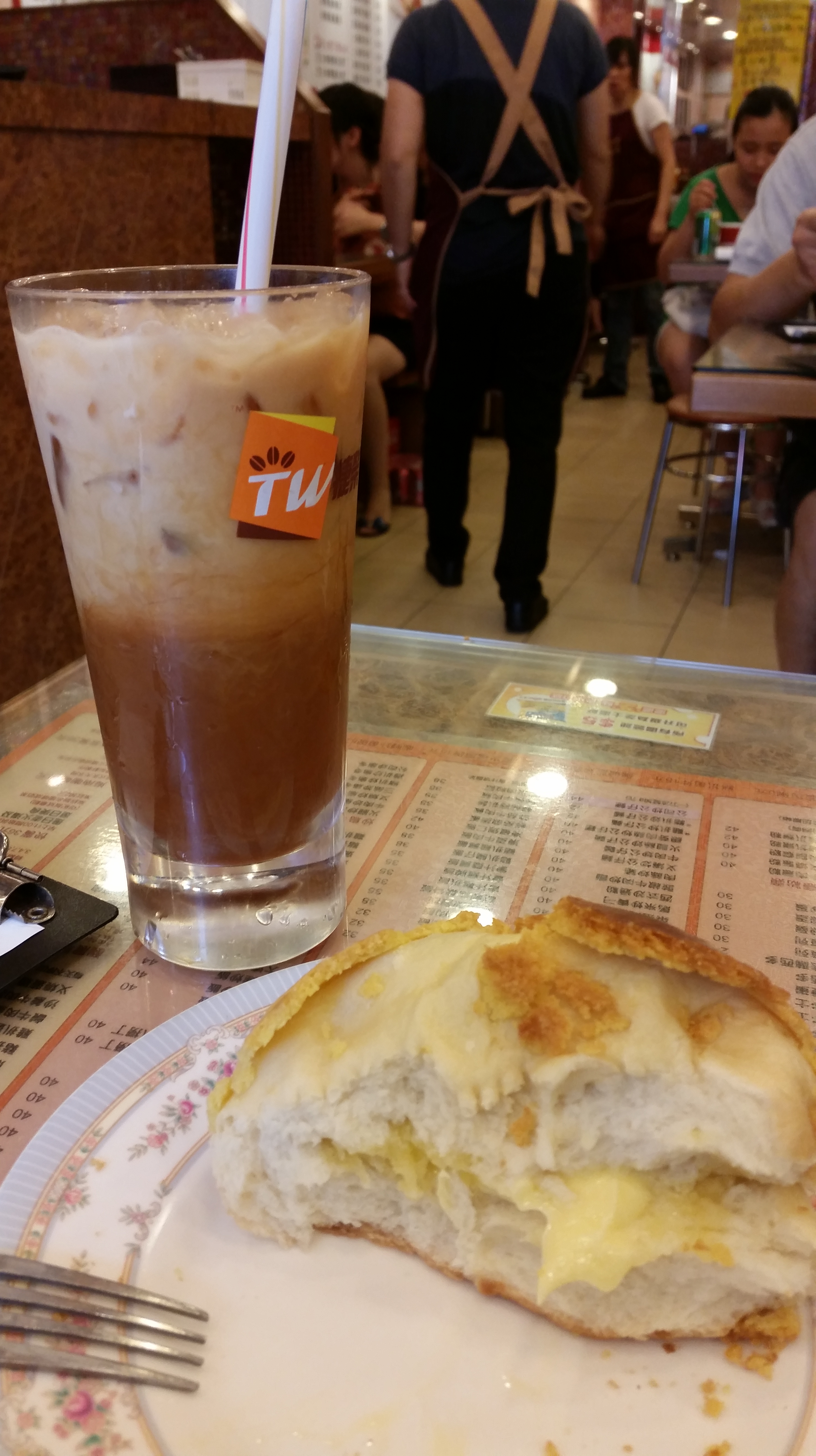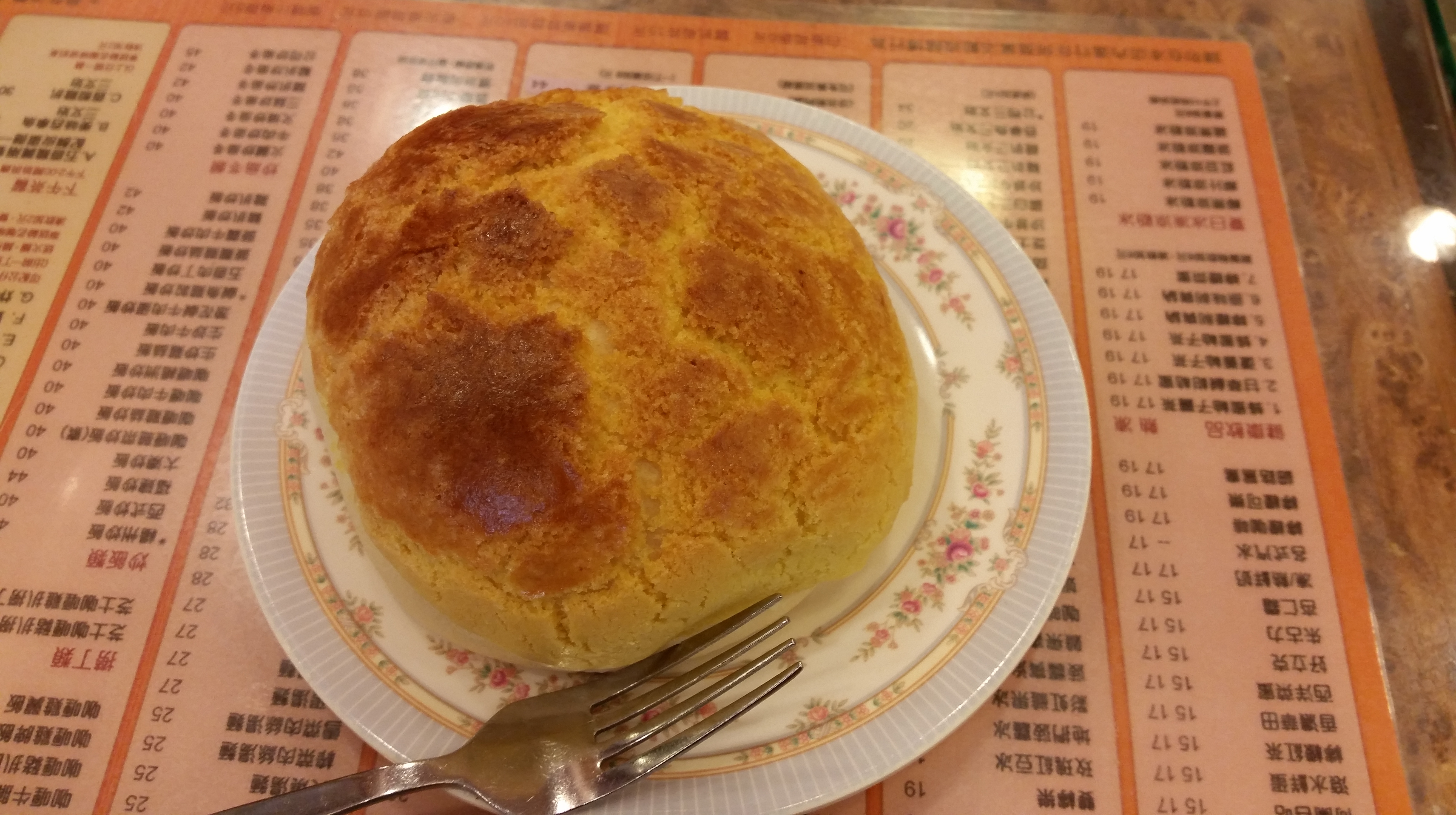 First, some background.  The name itself is kinda misleading.  Yes, it’s a bun but no, there’s no pineapple.  The name comes solely from the appearance of the crusty top which resembles the pattern of a pineapple.  These buns make appearances all over the show at tea shops, bakeries, dim sum restaurants and rank pretty high on the list of unique foods to try while in Hong Kong.  Funnily enough, they’re not that exciting to eat but there’s something about a pineapple bun with an iced milk tea that really caps off an afternoon.20140731_150211